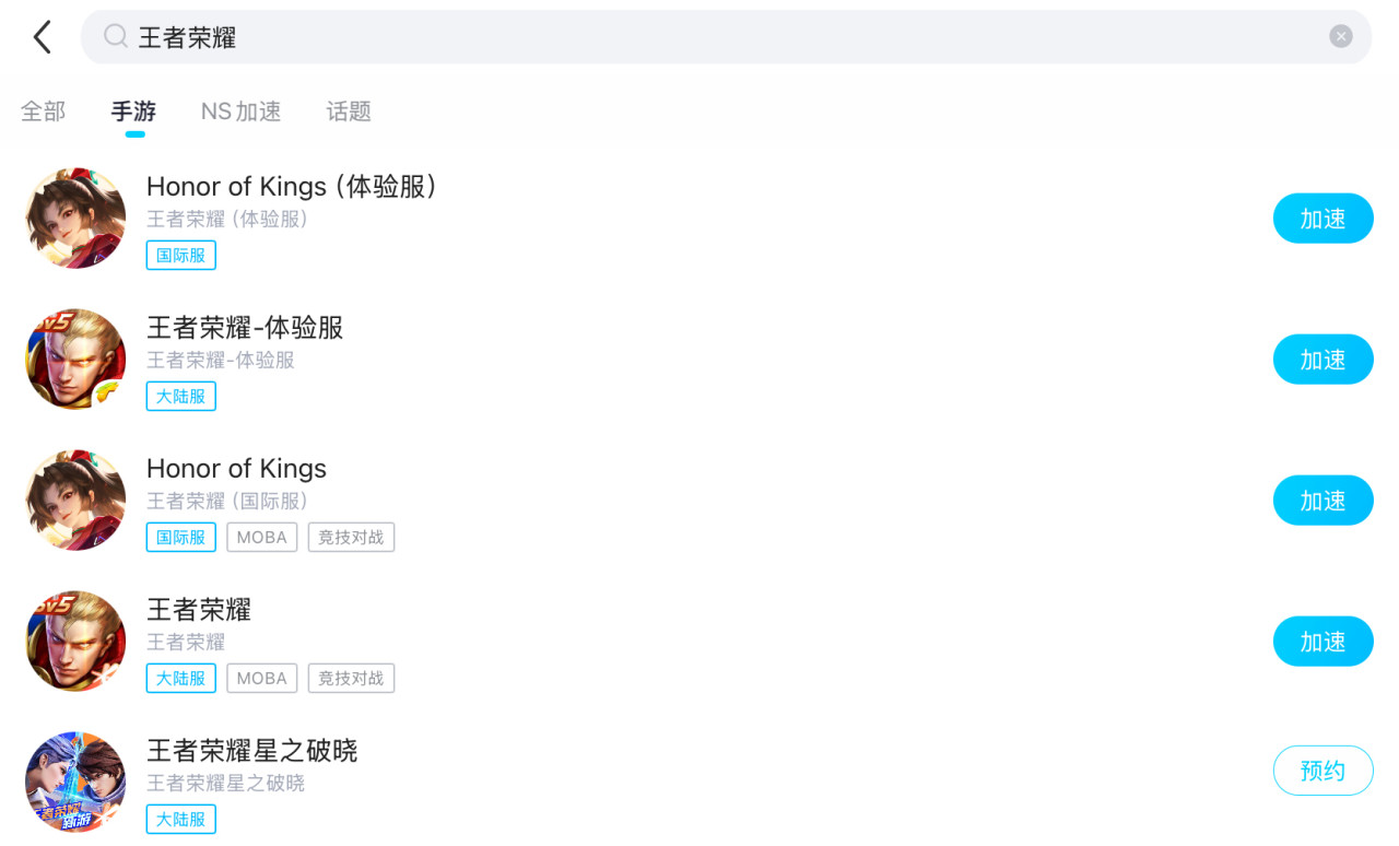 打开biubiu,在搜索栏输入“王者荣耀”,即刻呈现涵盖国服、体验服、国际服等全版本加速选项。无论是征战国服排位赛冲击最强王者,抢先体验体验服新英雄技能机制,还是与国际服玩家切磋交流,只需一键点击目标版本,biubiu便能自动智能匹配专属加速线路,瞬间完成网络配置优化。无需手动调整复杂参数,从点击到加速仅需数秒,让你即刻畅享低延迟、零卡顿的对战体验,操控露娜打出月下无限连,都能行云流水,快人一步。
