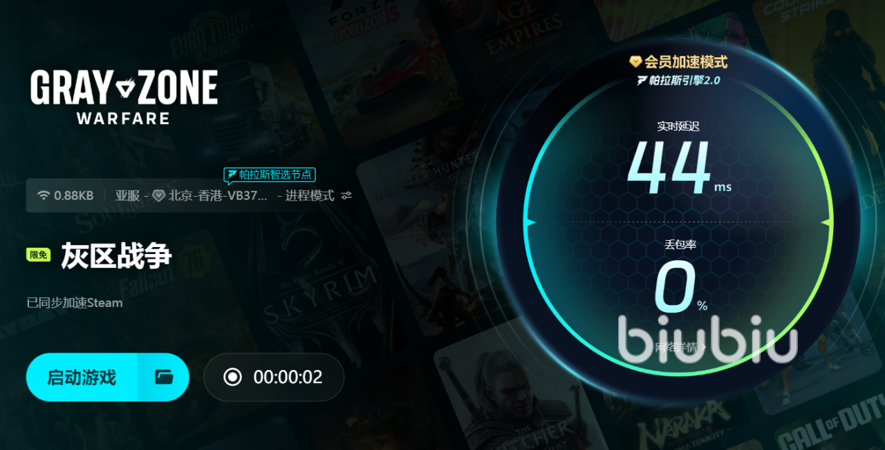 但如果排除了设备硬件问题,仍然遇到不定时闪退,那么就要考虑另一个常被忽视的原因:网络连接不稳定。《灰区战争》虽然具备离线训练模块,但核心玩法仍基于在线环境,无论是多人合作、任务同步,还是与服务器之间的数据传输,都依赖实时稳定的网络。当玩家所处网络延迟过高、频繁丢包或连接中断时,游戏在强行重连或数据写入失败时往往就会发生崩溃。这个时候,借助biubiu加速器无疑是一个更稳妥的选择。biubiu专注为PC端游戏提供网络优化服务,能够通过智能加速通道大幅降低延迟,提高连接稳定性,减少因网络异常而导致的游戏闪退和卡顿。
