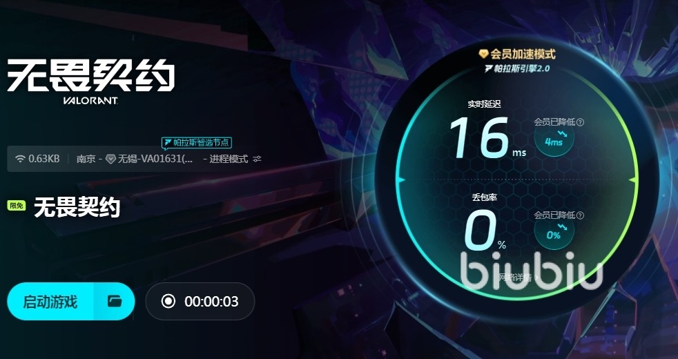 biubiu加速器是专门为游戏玩家而打造,可以一键解决游戏中的网络延迟、加载缓慢、掉线以及卡顿等一系列的问题给玩家提供稳定的网络环境。无畏契约是一种对于网络要求比较高的游戏,拥有稳定的网络则意味着反应的速度更快,会具备精准的射击体验。让玩家在战斗的过程中就能有机会抢占先机,可以轻松地应对一些复杂的战局。所以还在担心网络不稳定影响到游戏的体验,那就赶紧来关注一下这款加速器吧,可以让玩家在游戏中随时都能享受顺畅。