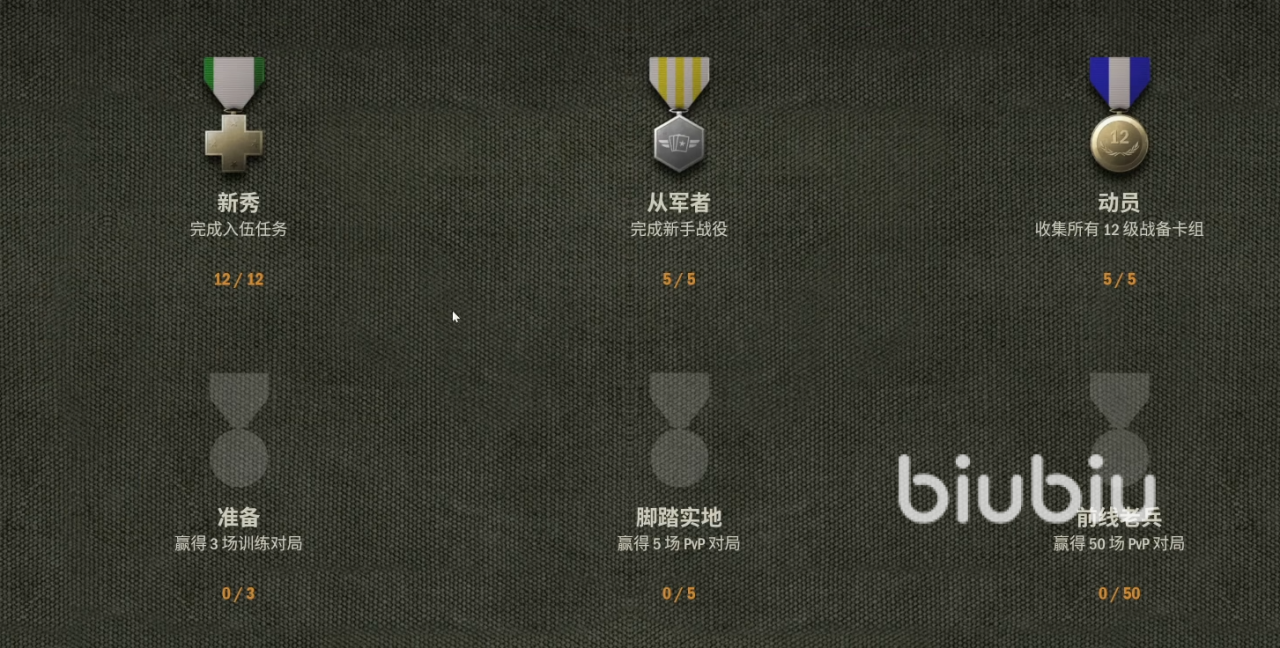新增成就勋章与勋表体系,玩家可通过完成特定目标(如PVP胜场、卡组收集)解锁展示性奖励。勋章分为“新秀”“战略大师”等层级,勋表则反映军官等级与服役资历。