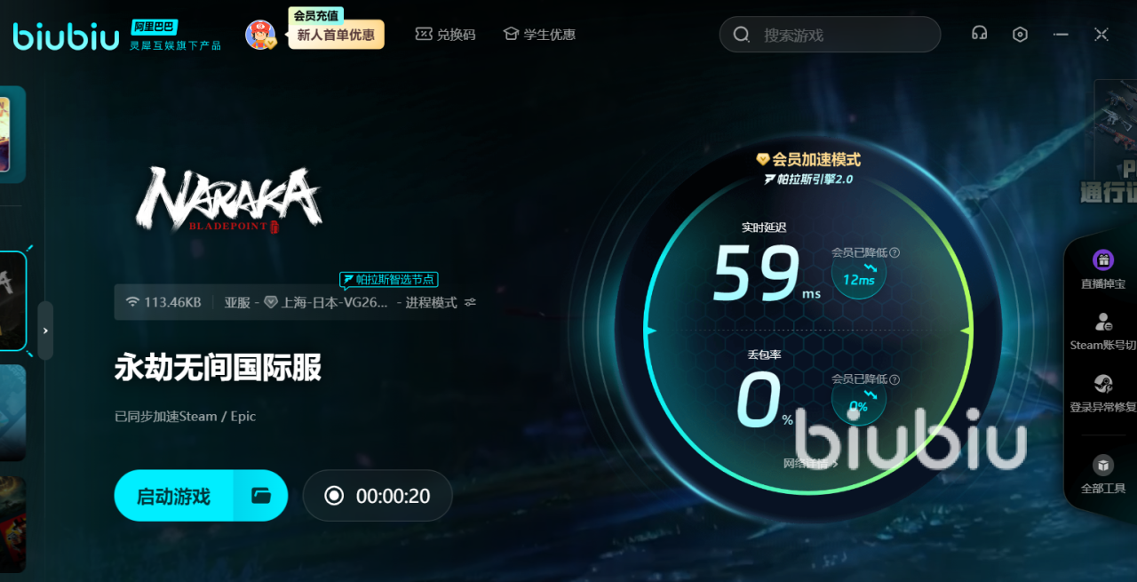助力玩家畅享永劫无间的同时,biubiu加速器诚意奉上专属福利,新用户登录立即领取24小时免费全平台加速时长,输入【biubiu不掉线】,即可再享72小时VIP加速特权。新老玩家轻松叠加最高达96小时的顶级加速体验,从此告别延迟困扰,尽享丝滑战斗。