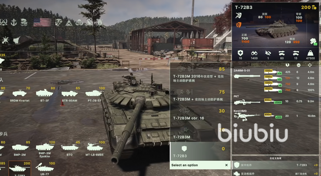 主战坦克以T72B为核心主力。建议升级爆炸反应装甲与火控系统提升生存能力与穿甲效率。T62M作为次级选择价格低廉可集群部署实施数量压制。步兵战车首选BMP3多功能平台。基础配置搭载100毫米低压炮与30毫米机炮。升级选项包括时代炮塔系统整合57毫米炮与反坦克导弹强化对装甲目标杀伤。BMP2M侧重反载具能力可挂载四枚短号导弹实现双目标同步打击。轮式装甲车BTR82AT适合机动支援。牺牲两栖能力换取笼式装甲防护并装备30毫米机炮或反坦克导弹。配装时需明确分工BMP系列负责前线火力压制BTR系列侧重快速运输与侧翼掩护。