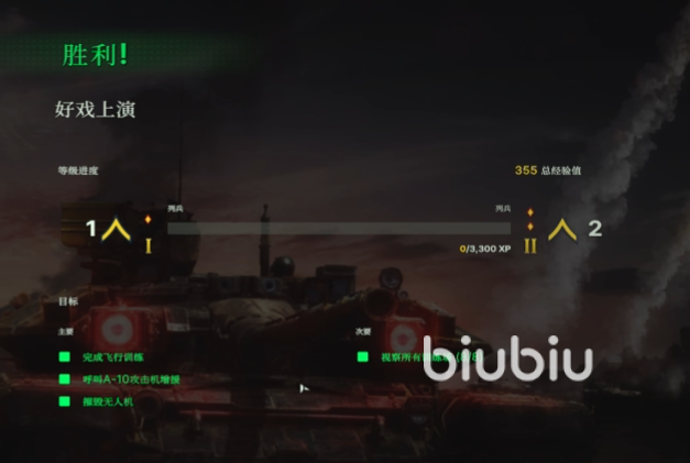 这些都操作一遍后就是玩家自主控制时间,调动装甲部队来到建筑群,打头阵攻击周围敌对坦克,并且摧毁建筑。先一轮火力铺设好之后,派遣步兵小队占领建筑物,逐个消灭剩余敌对势力。最后的清扫工作,就让空中单位执行,调遣固定翼飞机携带炸弹轰炸地面敌方目标,获得最终胜利。
