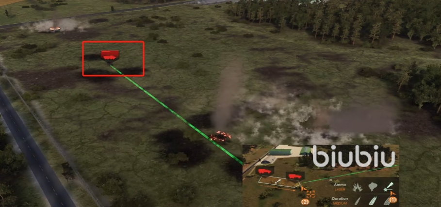 然后接上指挥官去参观演习,开车前往炮兵训练场,跟着指引,完成间接射击,前方目标已经用红色标注。想要更灵敏的射击效果,就需要智能炮弹。