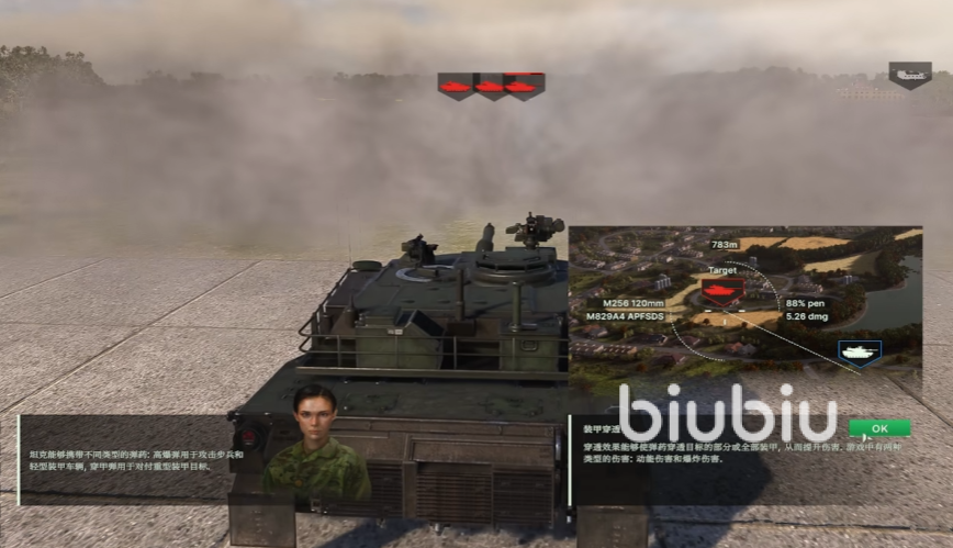 接着来到坦克部队这里,利用高爆弹攻击步兵以及轻型装甲车辆,弹药拥有足够的穿透能力,才可以击穿敌方坦克造成伤害。