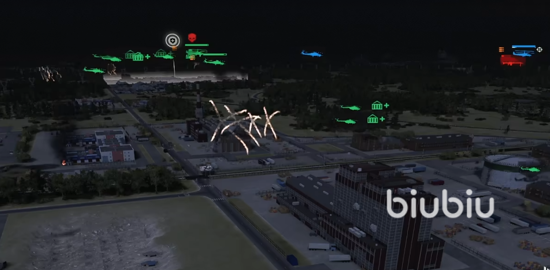 派遣飞机快速靠近发电厂,这里的防守力量并不强,空中火力密集可以快速消灭大部分敌军力量。