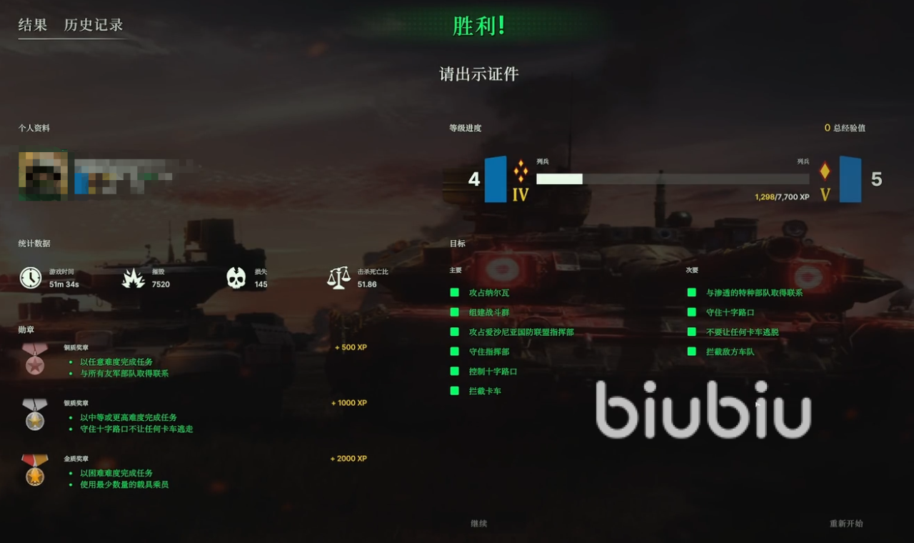 总之,断箭单人战役俄军请出示证件金勋章攻略就是以上的内容了,最后,金勋章要求全程零额外载具获取,且需控制战损:步兵存活率超80%、装甲损失不超过一辆。若完成目标未解锁勋章,建议重载任务或验证游戏版本修复漏洞。