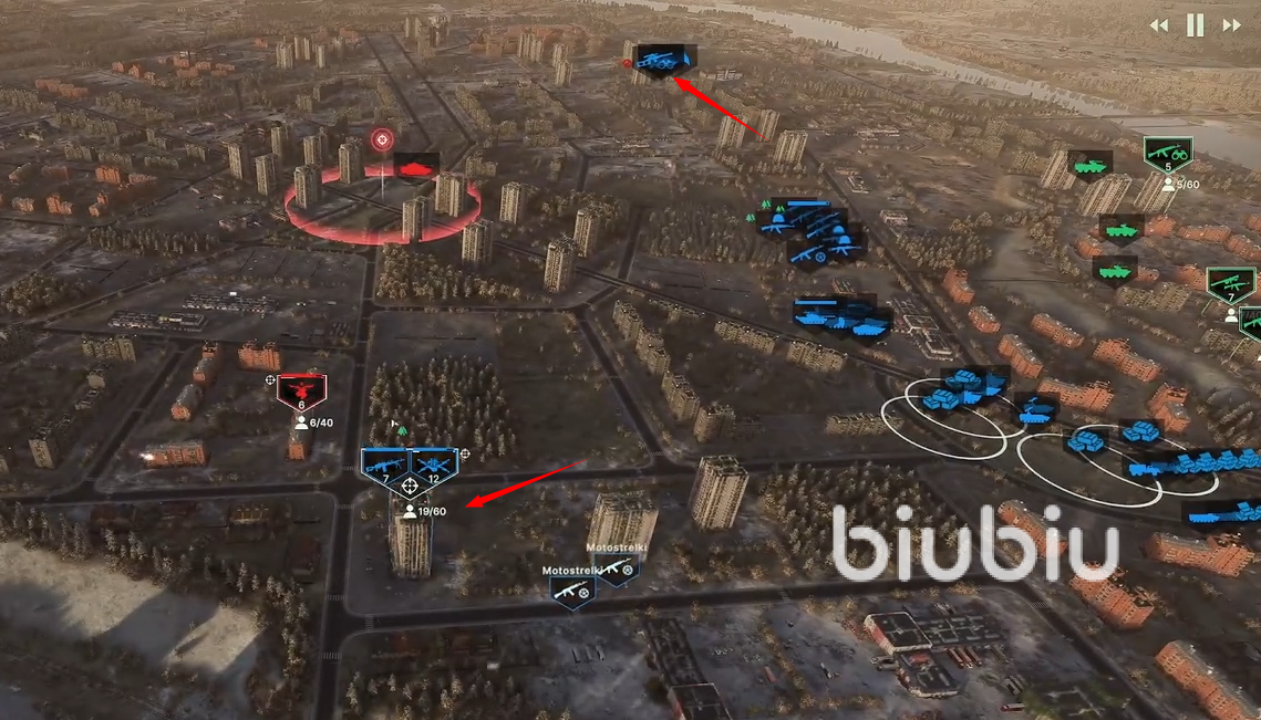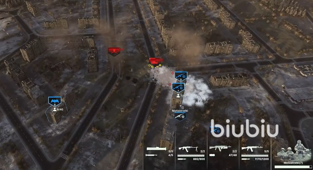 机步班组保留两具RPG作为反载具核心,但需注意其射程短板。所有单位统一编队后集中推进,以重装甲单位开路吸引火力,步兵紧随其后。关键点在于烟雾弹管理:进入建筑前必须铺烟封锁敌方视野,避免遭短筒火箭(如AT4、RPG7)瞬发打击。未铺烟时敌压制火力仍可反击,容错率极低。
