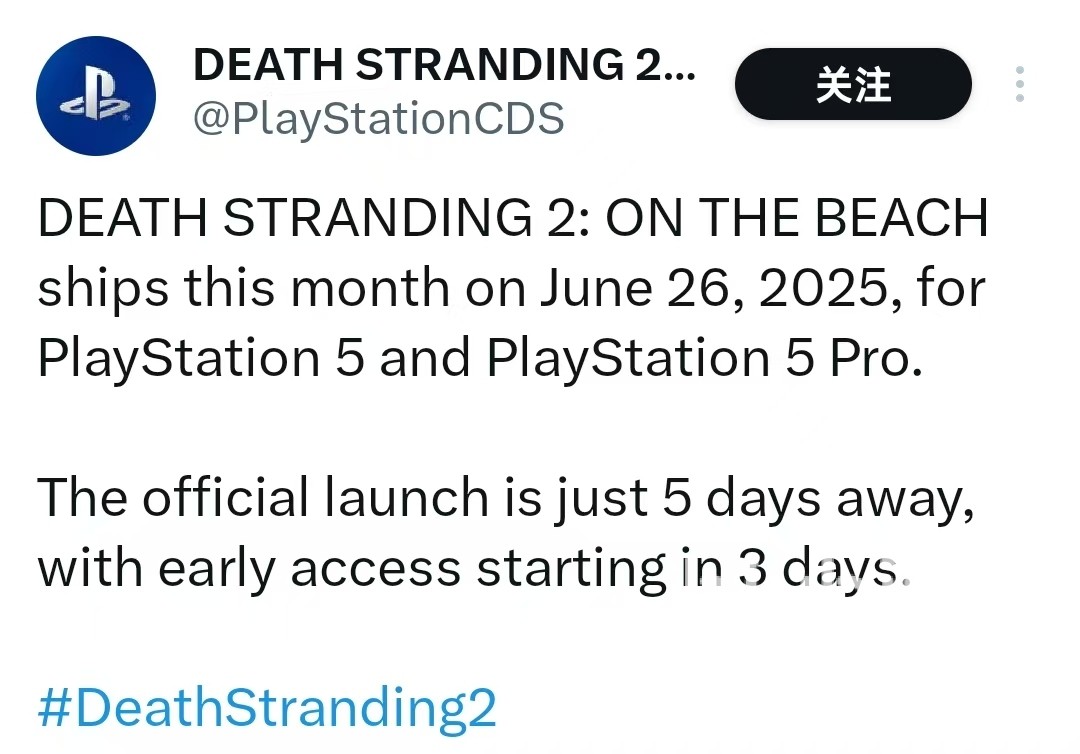 通过发布的官方信息可知,《死亡搁浅2》正式发售日期已定档2025年6月26日,游戏预购玩家可提前解锁游戏内容。其中,数字豪华版与典藏版用户可于6月24日提前48小时体验,而标准版玩家需等待正式发售日开启冒险。需要注意的是,本作预计2025年作为PS5首发平台独占,暂未登录其他平台,PC版可能要等到2026年登陆Steam平台。届时上线即可搜索游戏名称在Steam添加游戏单!