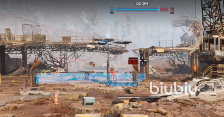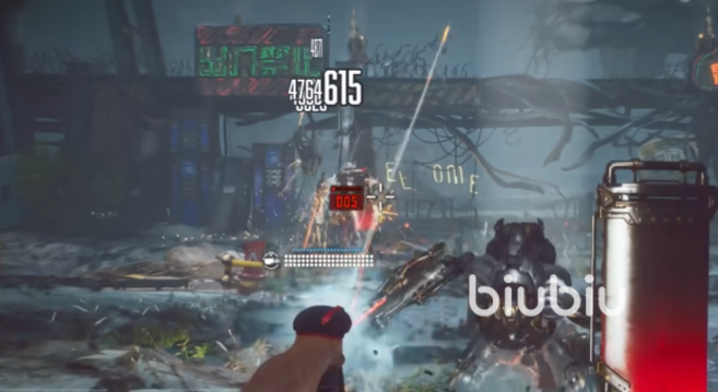 接受委托之后来到下图所示位置,一直往上跑在,在箱子旁边会看到个小机器人,点击进入射击关卡,跟妮姬里面的是一样,伊芙手持枪械攻击面板前的怪物,会一次性出来好几个,灵活转动枪口瞄准击杀,怪物吐毒的时候注意翻滚躲避,等上方计时条变成蓝色时就结束了。