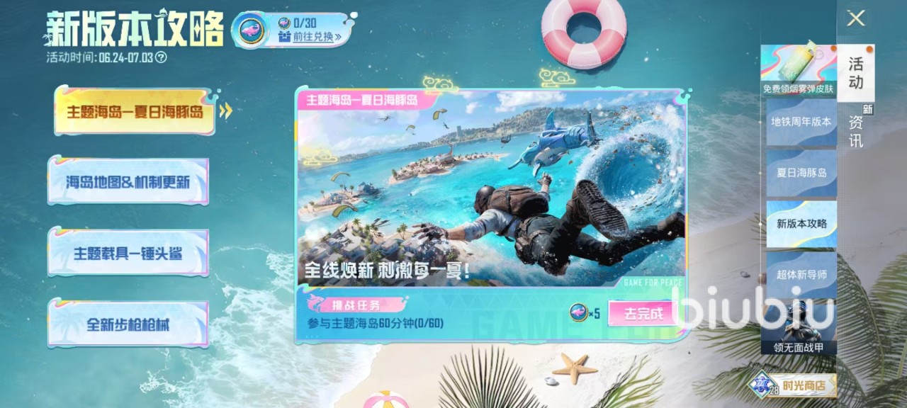 2025年06月25日 15:52 来源:噬神却勘九郎和平精英6月24号更新公告内容是什么?在夏季的时候,和平精英往往都是会有大版本出现的,因此大家格外期待。本期小编就给大家带来24号更新的新版本都有哪些内容,不仅出现了新的时装玩法,还有全新地图可以沉浸式的体验,能够获取的资源非常多,各种好礼皆可领取。
