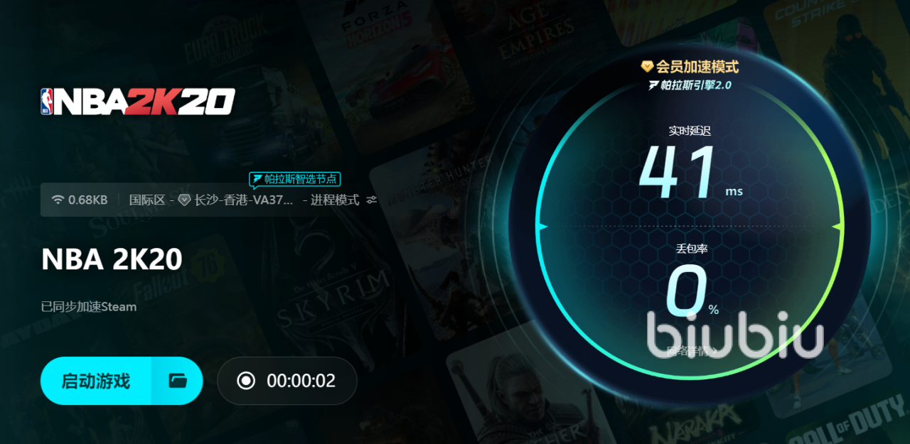 除了稳定性和福利优势外,biubiu还具备极强的易用性。整个操作流程非常简单:安装完成后打开App,搜索“NBA 2K20”或“2K20王朝”,一键点击即可开启加速服务,无需手动配置参数或切换服务器。加速成功后,用户还可以实时查看延迟、丢包等网络数据,方便对比加速前后的效果变化。软件界面设计简洁直观,功能布局清晰明了,哪怕是从未使用过加速器的新手,也能迅速上手。此外,biubiu还支持多款平台与游戏的切换,对于同时游玩多个作品的玩家而言,堪称一站式加速解决方案。