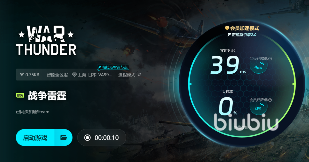 如果在激烈的空战或地面战斗中,出现突然的掉帧或卡顿,不仅会影响操作手感,还可能导致关键时刻的判断失误,错失战机甚至被击落,实在是太可惜了。而biubiu加速器正好可以解决这类问题。它通过智能加速技术优化网络连接,降低延迟与丢包,让你的游戏过程保持稳定流畅。即使在高负载场景下,也能有效保障数据传输顺畅,避免因网络问题而拖累战局,让每一次战斗都尽在掌控。