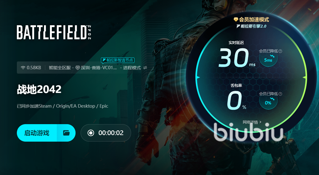2025年06月27日 14:02 来源:熊猫远沙瓦郎不少玩家都遇到过一种令人抓狂的情况,刚刚准备冲锋陷阵,结果突然闪退回桌面,甚至没有任何报错提示。这种问题多数并非电脑配置不足,而是因为网络波动导致客户端与服务器连接中断所致。那么战地2042闪退如何解决呢?推荐使用biubiu加速器。biubiu通过智能节点切换与延迟优化,能够有效稳定战地2042与服务器之间的数据通道,避免因丢包、延迟过高或网络异常触发系统级闪退。尤其是在128人大场面或激烈载具战斗中,biubiu可显著提升连接稳定性,减少掉线与崩溃。