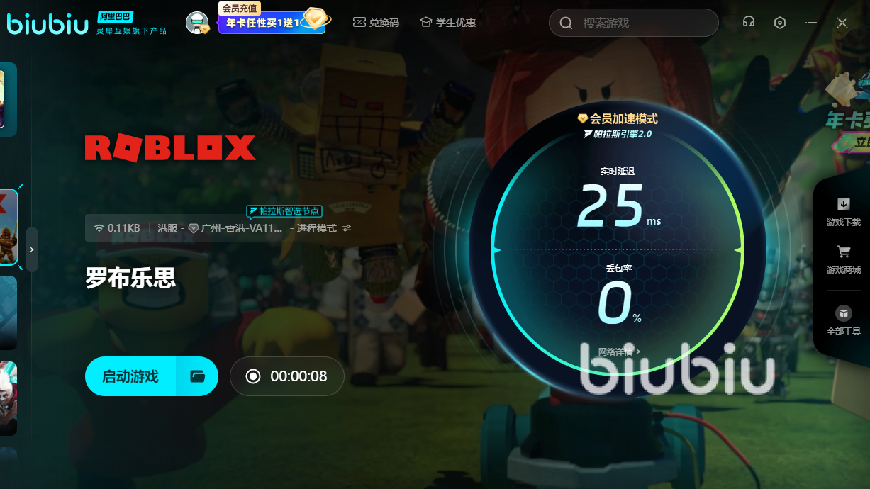 2025年06月30日 14:51 来源:火山或嘟嘟罗布乐思是一个全球超火的3D沙盒游戏平台,玩法超级丰富,只不过罗布乐思掉帧掉线怎么办?一旦出现这些情况的话,就算平台里的游戏再好玩,那自己也只能干瞪着眼看其他人玩耍。最好用上biubiu,经过加速后,方可更快渲染出与其他玩家一同娱乐的画面,期间还可以防止掉线。