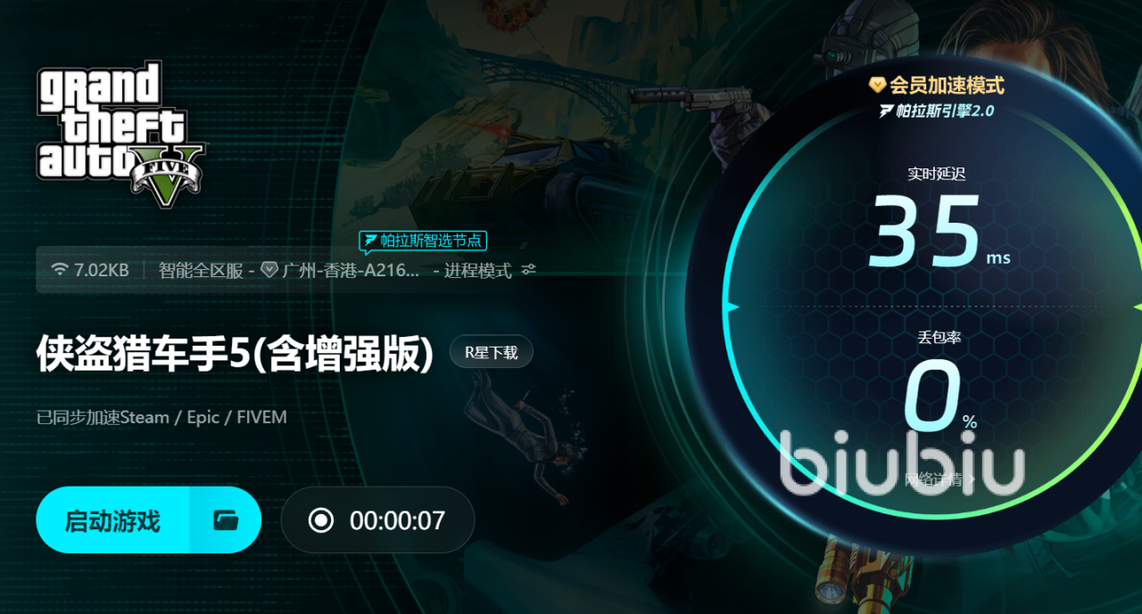 2025年06月30日 15:39 来源:利斧却水箭龟侠盗猎车手5掉帧掉线怎么解决是许多玩家在洛圣都冒险时常遇到的难题。游戏中的卡顿和网络不稳不仅影响操作体验,更容易导致关键时刻失误,尤其在多人联机时更为明显。针对这些网络问题,小编强烈推荐使用biubiu加速器。它能智能选择最优线路,大幅降低延迟和丢包率,确保游戏数据传输稳定顺畅。无论你是在帮派激战还是自由游玩,biubiu加速器都能显著提升网络质量,减少掉帧和断线,让你享受更加流畅稳定的侠盗猎车手5体验,助你在虚拟洛圣都自由驰骋,尽情释放游戏魅力。