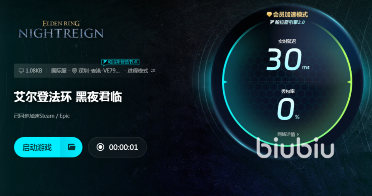 biubiu加速器专注于为游戏用户提供高速、稳定的网络加速服务,拥有遍布全球的加速节点,智能匹配最优节点。对于艾尔登法环这类实时互动和高强度数据交换的游戏来说,biubiu的加速效果尤为明显。