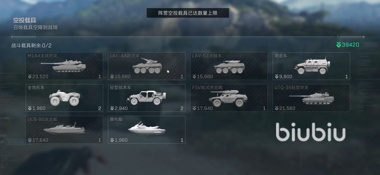 空投载具:呼叫轻型坦克所需分变为1万,新增呼叫保护(呼叫者有短暂优先使用权)。