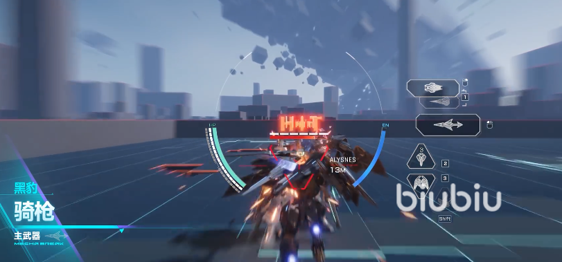 机制:长按蓄力可提升伤害与突刺距离,无视流体装甲直接破坏机体结构,命中后造成物理伤害+失衡。突刺时无法调整方向,且消耗能量。