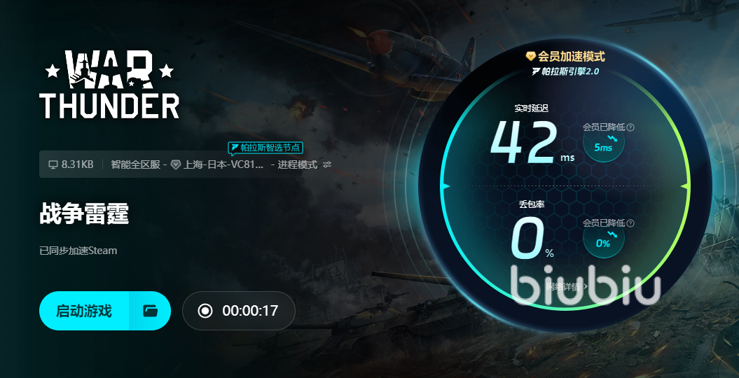 总之,想要杜绝卡顿、延迟、掉帧这样问题的发生,战争雷霆配备加速器是必然的选择。战争雷霆加速器怎么选?选用biubiu加速器绝对没有错。最后,想要提醒一下各位玩家,如果想要游戏获得良好的加速效果,只要通过biubiu启动游戏,就可以轻松获得!