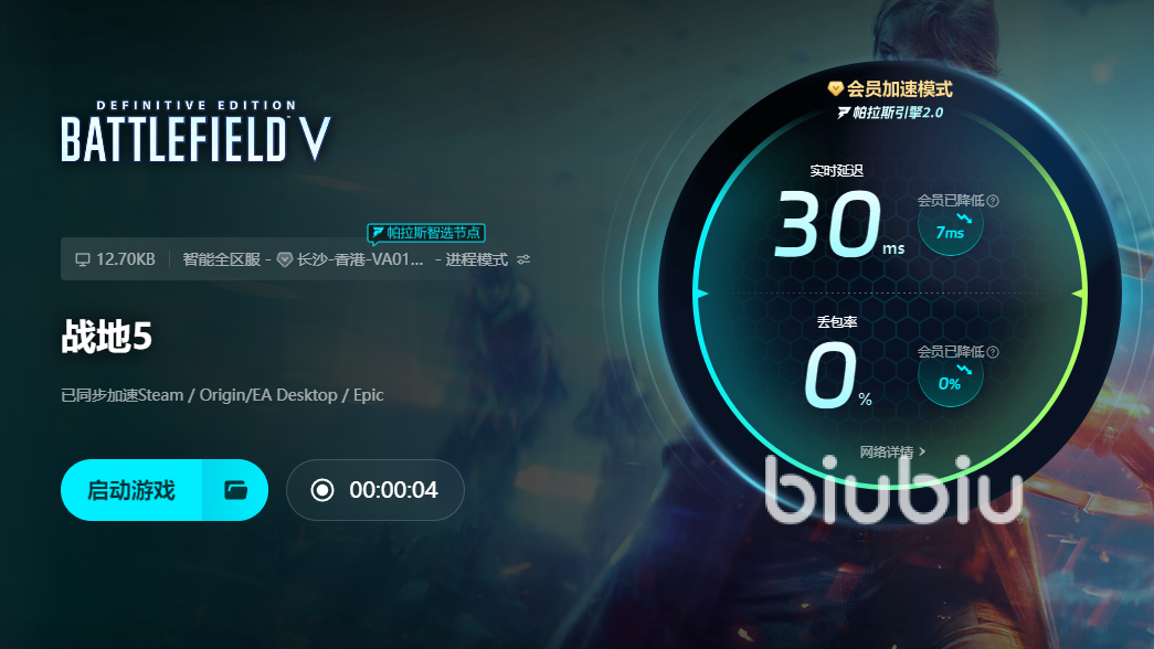 以上便是战地5加速器的全部内容了,游戏中带来的玩法元素丰富,同时刺激的战斗画面也得到了广大玩家的一致认同,小伙伴们若是希望能让实际游戏体验效果更好,那么biubiu的使用就不容忽视,有需要就抓紧点击链接来下载吧。