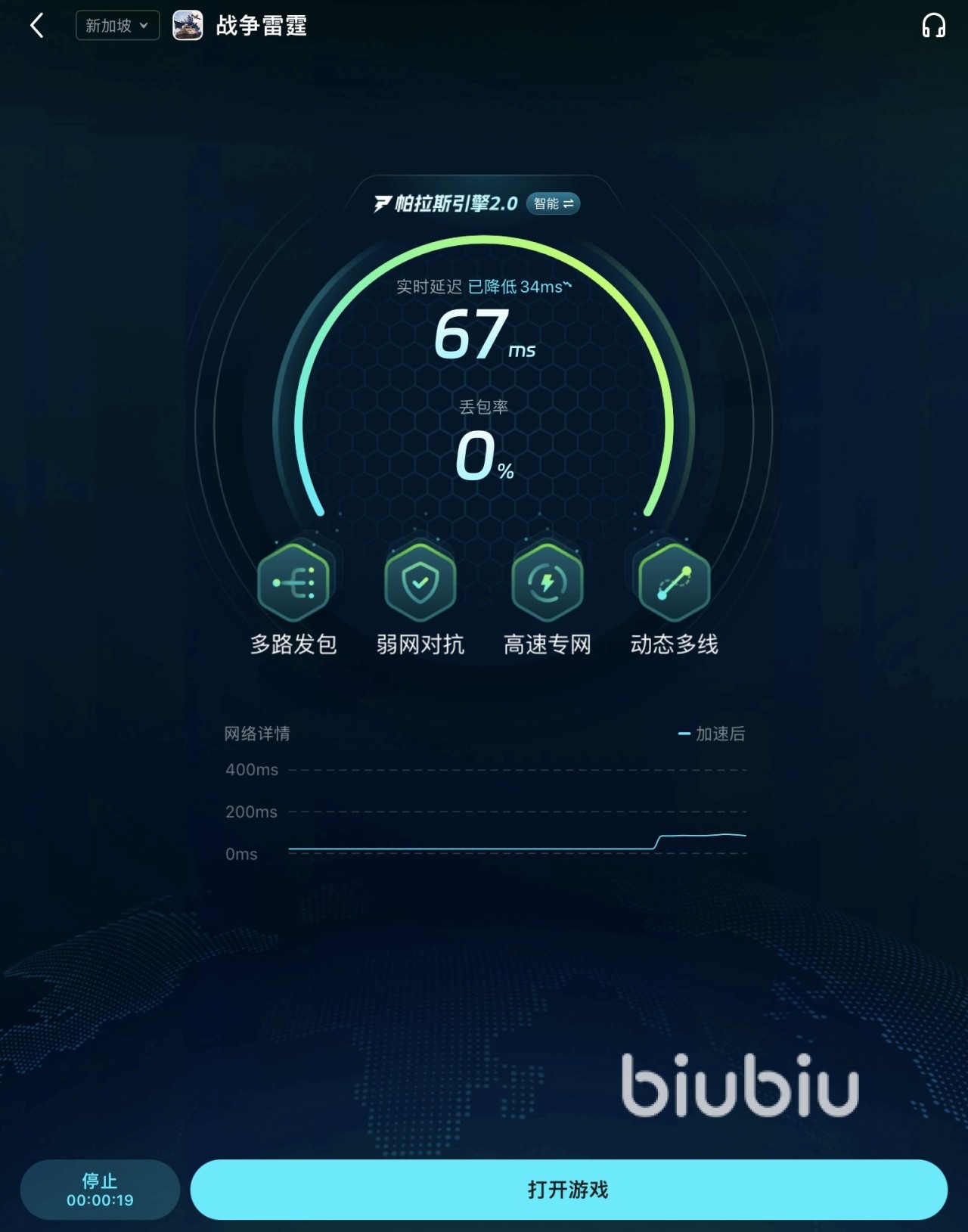 对于新人用户,biubiu提供3天免广告加速福利,让你无需担心广告弹窗的打扰,尽情享受纯净、流畅的游戏体验。在这3天里,你可以肆意驰骋在WarThunderEdge的战场,不用担心掉线掉帧的问题,酣畅淋漓地感受游戏魅力。如果3天时间不够,别担心!biubiu加速器还有看视频广告获取加速时长的贴心功能。只需花费一点时间观看视频广告,就能轻松延长加速时长,经济又实惠。