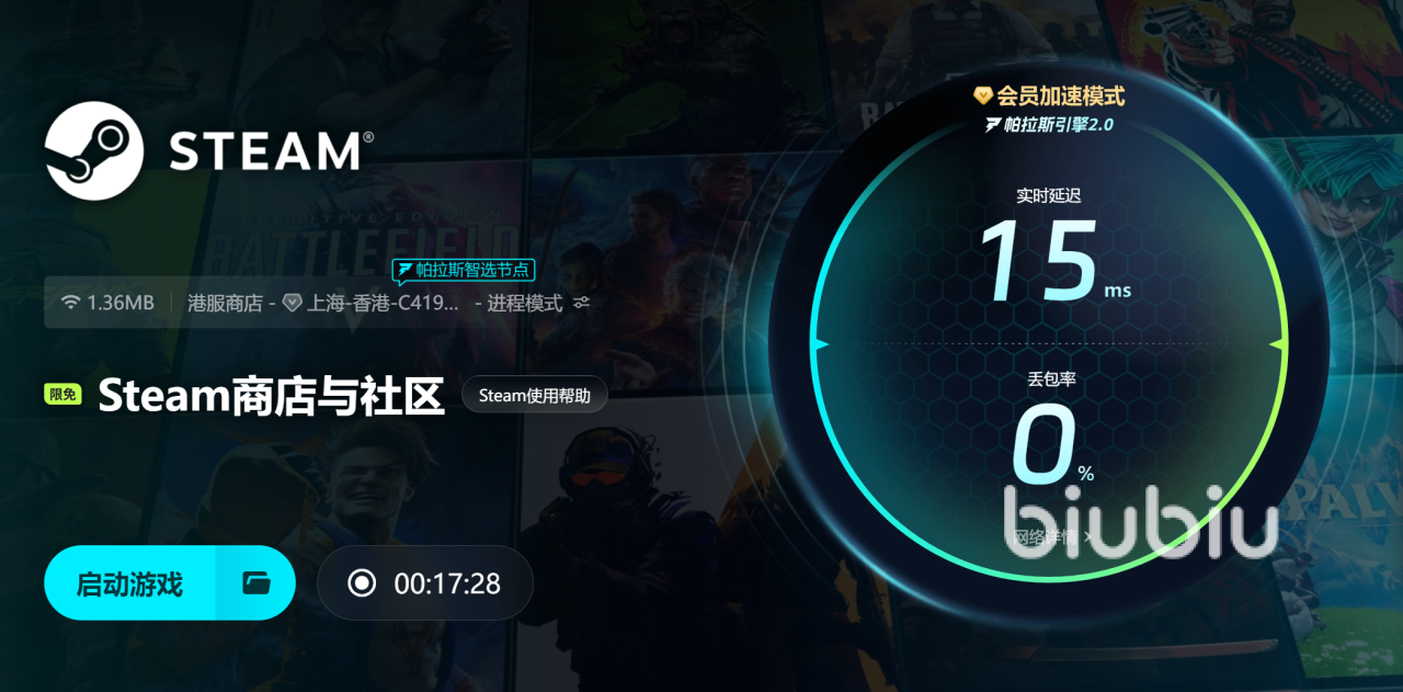 biubiu加速器拥有遍布全球的优质线路,能智能化的匹配最佳节点,大幅降低网络延迟,有效避免因网络距离产生的掉帧掉线情况。同时,biubiu加速器具备强大的网络优化能力,可稳定网络连接,减少丢包率,即使在复杂的网络环境下,也能保障Steam商店与社区的稳定链接。而且biubiu加速器是支持Steam里面多款游戏的加速服务的,无论是国服还是国际服都可以提供优质的加速服务。