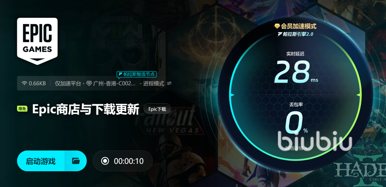 2025年07月03日 16:43 来源:虫洞信水精灵很多玩家在使用Epic商店时,常被Epic商店与下载更新延迟丢包和下载缓慢等问题困扰。这些问题不仅让玩家们无法第一时间购买下载新出的游戏,还影响了已经在游戏库中的游戏更新,最最重要的是每周一款的免费游戏怎么白嫖,严重影响了游戏体验,破坏玩家的好心情。其实不用担心,这个问题很好解决,最简单的就是下载biubiu加速器。