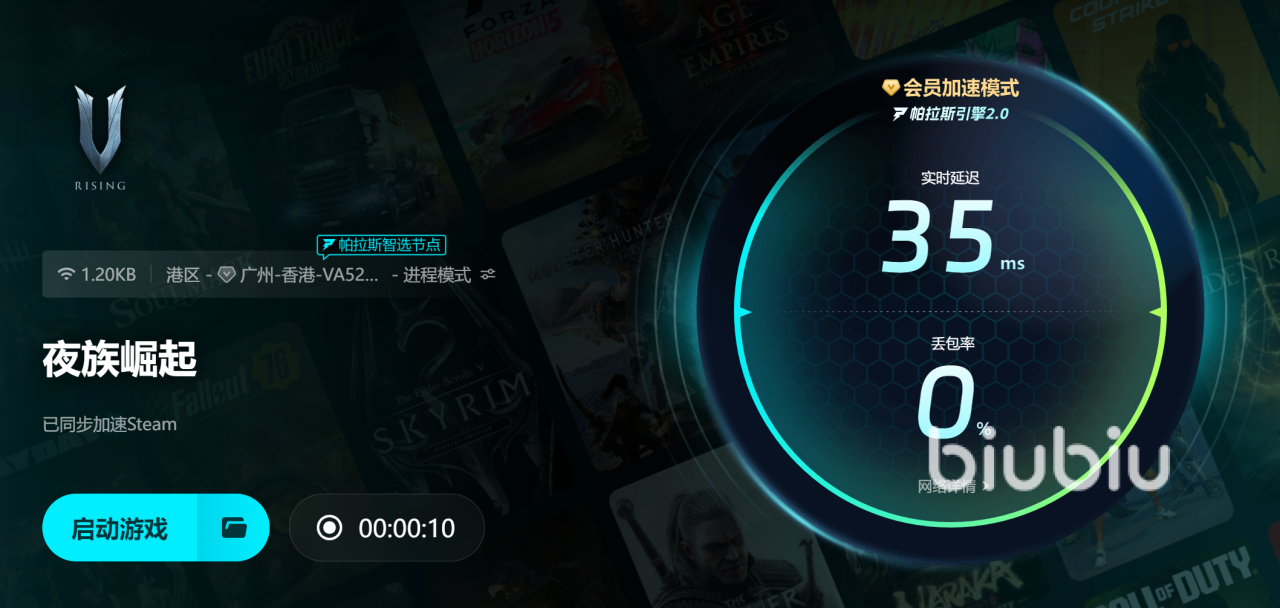 夜族崛起出现掉帧,除了设备配置不足,网络不稳定是一大主因。游戏服务器距离远、网络拥堵,数据传输延迟高,画面自然就会出现卡顿。这时,加速器的作用就凸显出来了。它能优化网络连接,建立专属高速通道,减少数据传输的延迟和丢包,让游戏运行更流畅。使用加速器好处多多。首先,降低游戏延迟,告别瞬移、画面卡住的尴尬,技能释放更精准,操作响应更及时。其次,减少网络波动,无论是多人联机对战,还是探索广阔地图,都不用担心突然掉线。最后,突破网络限制,轻松连接海外服务器,和全球玩家一起游玩。在众多加速器中,biubiu加速器脱颖而出,是游戏加速器中的佼佼者。