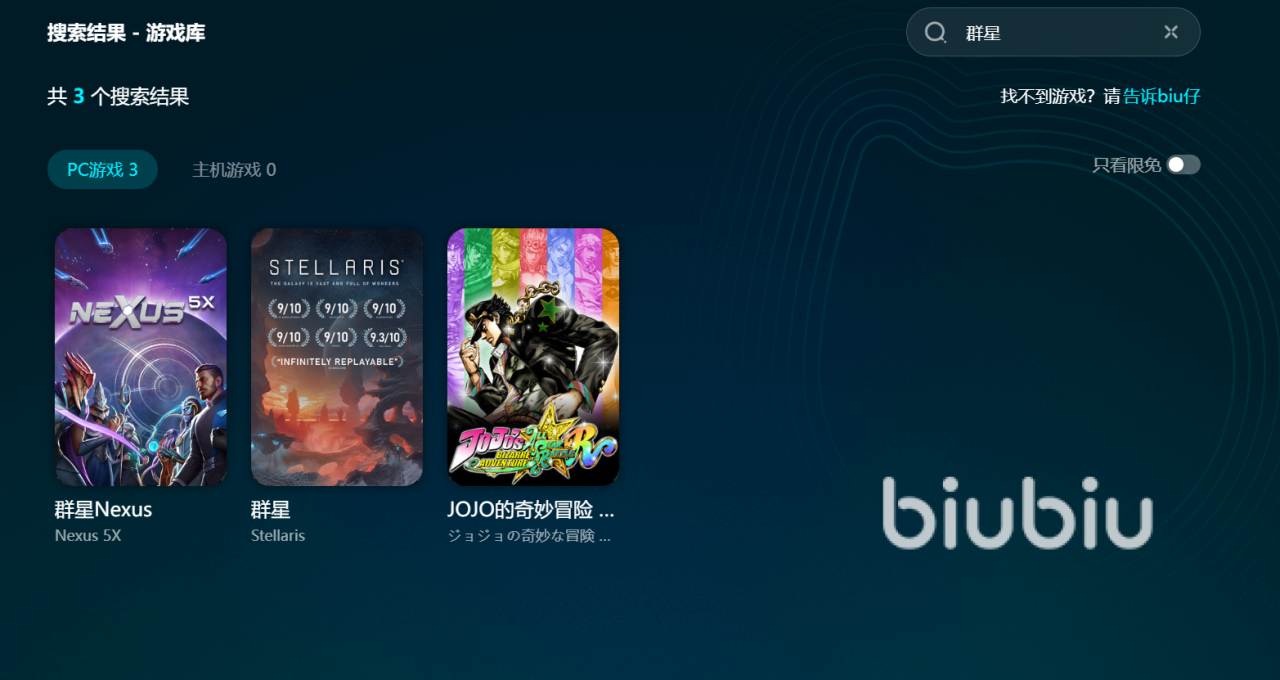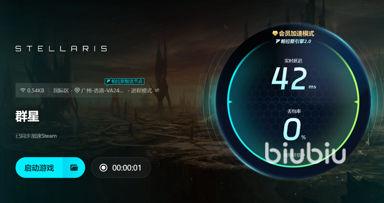 群星游戏因网络不稳引发的卡顿和延迟长期困扰玩家,biubiu加速器凭借智能匹配和自研优化技术,为你精准选取最佳加速线路,有效减少延迟与丢包,带来流畅顺滑的游戏体验。操作简单,全程自动加速,无需复杂设置,轻松提升网络性能,让biubiu成为你可靠的隐形助力,助你畅游群星,释放游戏潜能。