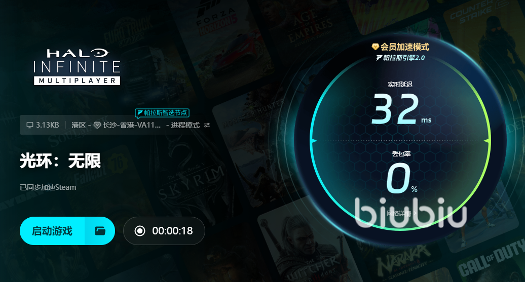 以上,就是小编整理的光环加速器选哪个好内容,并且给大家分享了选配加速器的指标参考标准,希望能帮到各位正在为掉帧、掉线烦恼的玩家。最后,提醒各位光环无限的玩家,如果想要游戏获得biubiu加速效果,需要先启动biubiu加速器,然后通过加速器启动游戏才可以的哦!