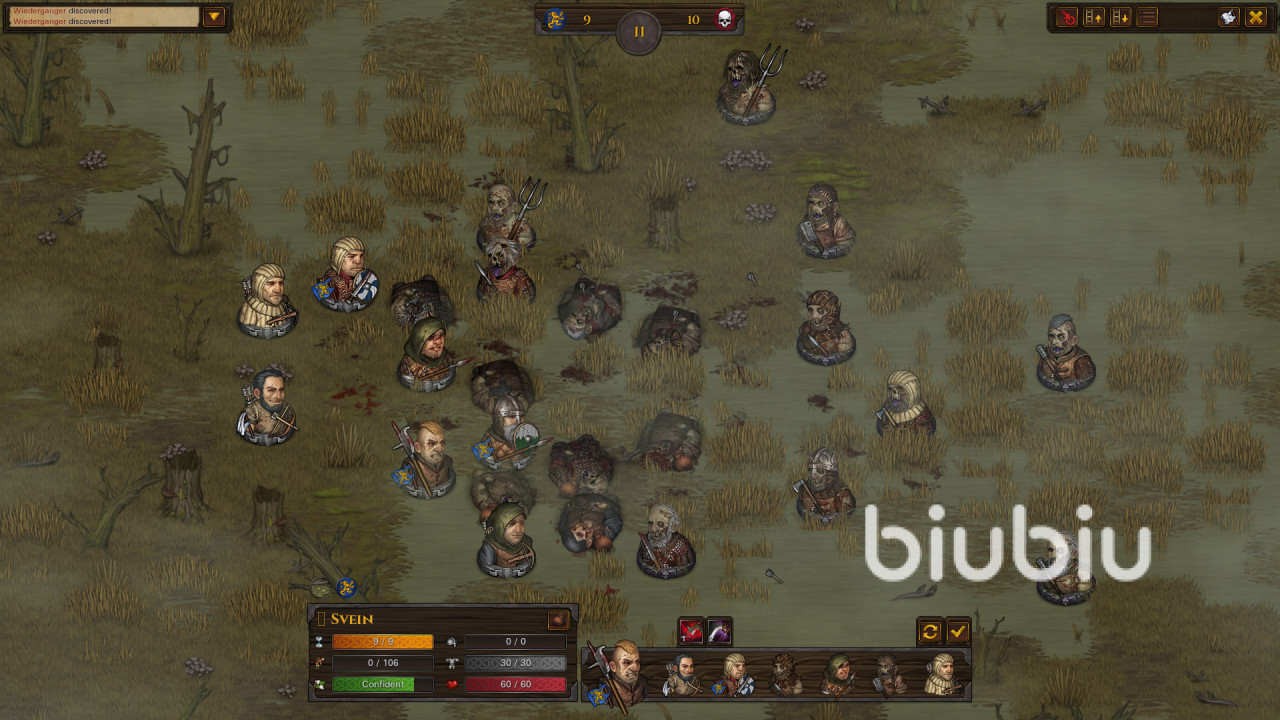 开局可刷初始,玩家优先选择铁肺、坚定等加属性面板值的特性,选50+士气的做队长。初期从杂货店采购便宜且需要修理的装备,如民兵矛、软垫皮甲。尽快招募到12名兄弟,日工资控制在10左右,前排至少6个肉盾,后排弓箭手不少于2个。