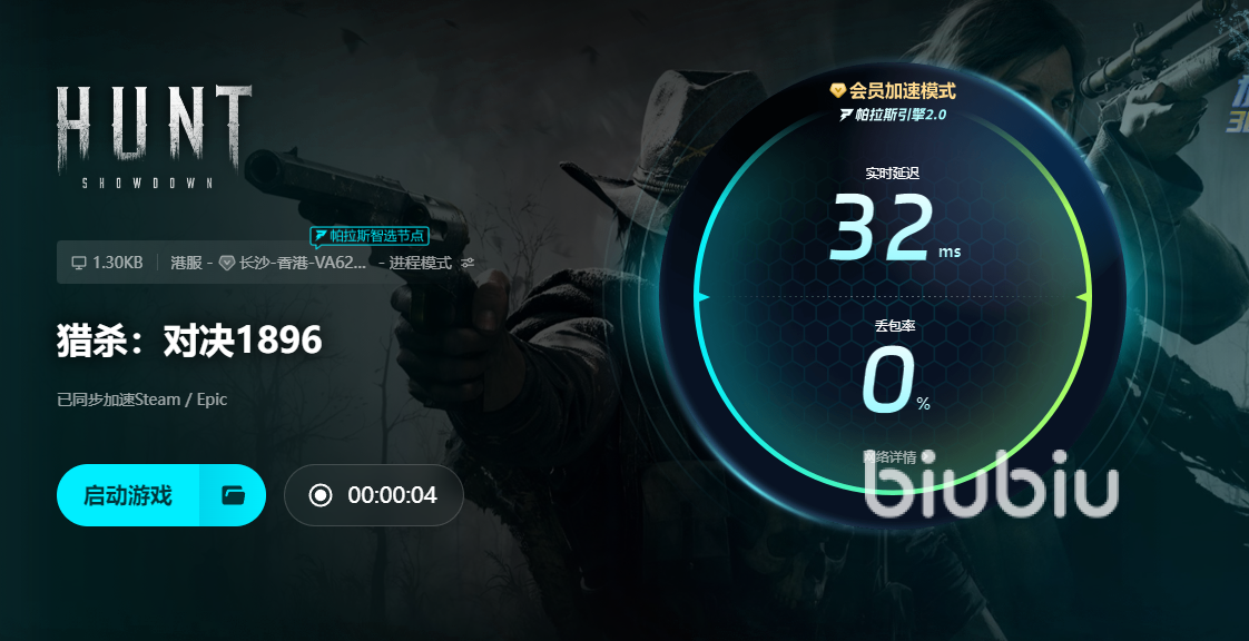 猎杀对决战斗激烈,玩家安装好biubiu,避免关键时刻死机。运行之后,玩家寻找游戏进行加速,观看具体加速效果。现在,biubiu推出新人免费用24H福利,玩家登录之后自动获得特权,还能通过【biubiu不卡顿】兑换码延长3天加速期。