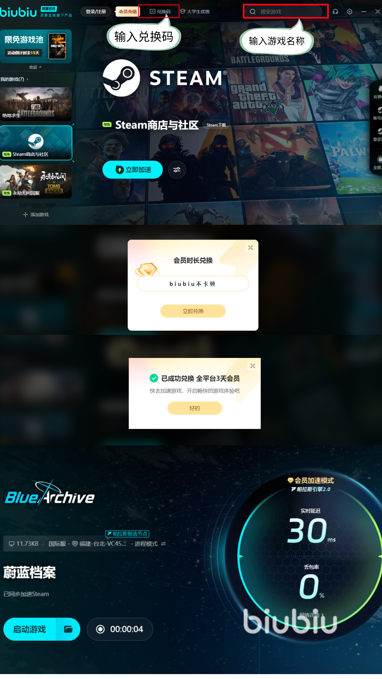 由于大家基本上玩的都是国际服,所以推荐使用加速器,这样不用担心因为网络波动等原因造成卡顿或者延迟等各种情况,现在下载biubiu新人立刻就有24小时免费提速,服务可以享受,此外全平台每个用户都可以用【biubiu不卡顿】再次兑换三天体验时间,也是不需要花钱的。