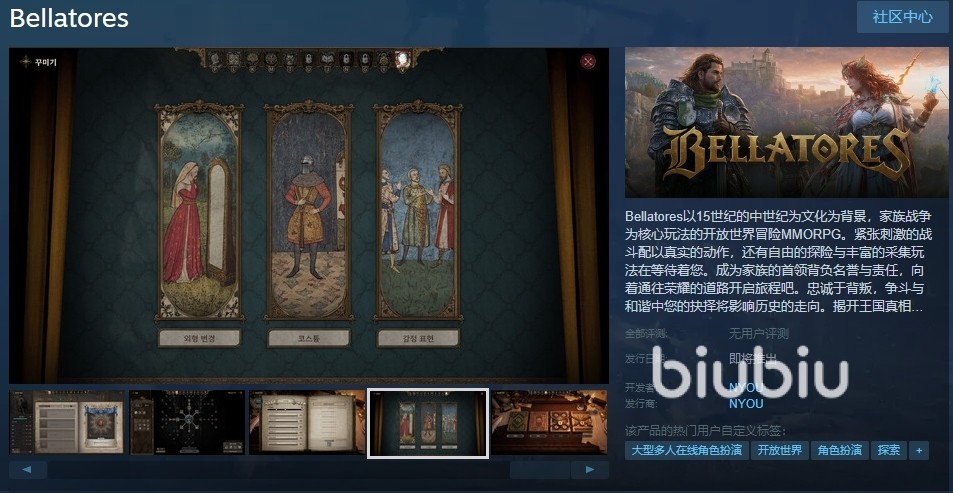 根据开发商Nyou公告,Bellatores目前唯一确认的上线平台为PC端的Steam。虽然在Steam上并未明确发售时间,但会进行游戏测试,游戏的封闭测试将于2025年7月8日开放资格申请,测试时间为7月30日至8月3日,仅限韩国地区。此次测试将开放核心战斗系统、装备制作玩法及部分开放世界内容,玩家可通过官网或合作平台预约获取测试资格。