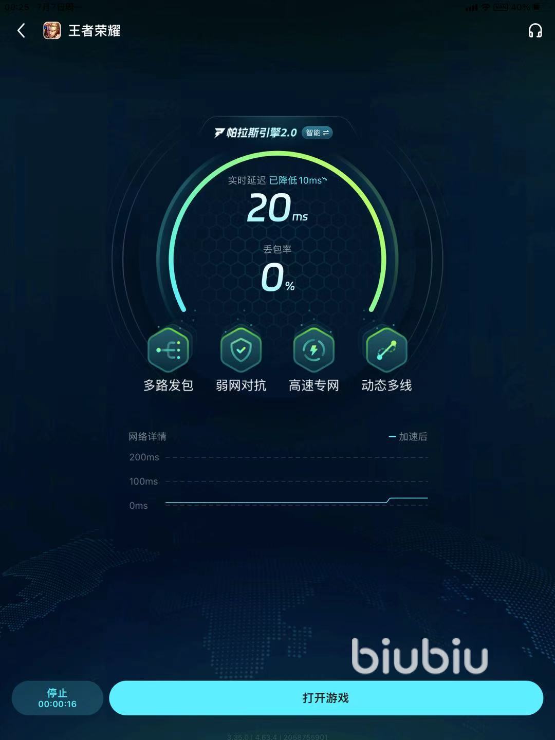 2025年07月08日 17:04 来源:梦魇乎纲手打王者时,突然出现卡了一下,团战关键时刻闪退了,这种情况想必很多玩家都经历过,心态瞬间爆炸。王者延迟、闪退怎么办?别着急,玩家们可以先清理一下手机后台软件,再检查一下网络设置,当然想要畅快开黑上分,一款靠谱的加速器必不可少,biubiu加速器就是你的绝佳选择。