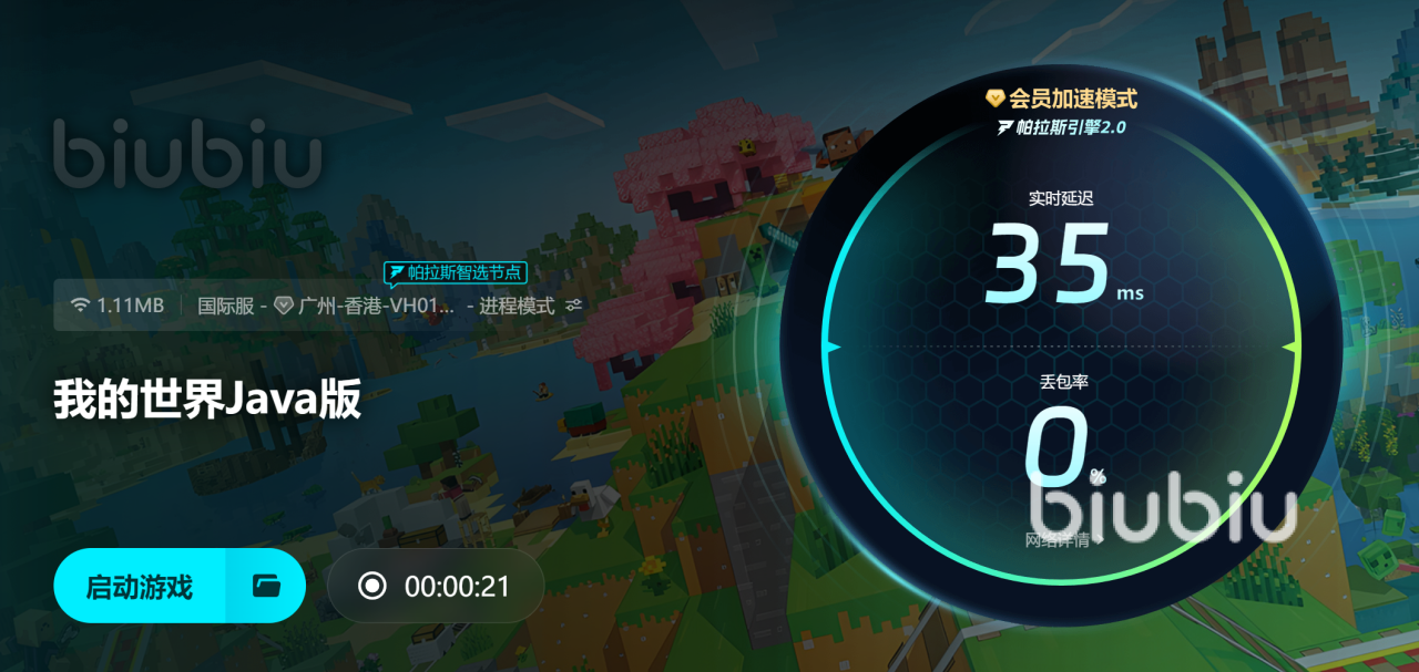 biubiu加速器使用方法也很简单,打开biubiu加速器,搜索“我的世界Java版”,然后点击加速,整个加速过程就完成啦。同时biubiu加速器还支持海量的游戏加速,可以为你喜欢的游戏提供加速服务。