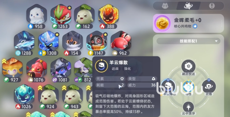 官方前期是很友好,给出来很多宠物选择,我们有搭配的基础。蓬蓬羊是一个很不错的辅助宠物,羊云爆散技能是吸气后砸地爆炸,不仅对周边区域造成伤害,此范围的友方还会提升50%暴击率,持续时间15秒。