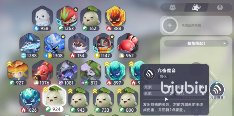 另外它还有亢奋魔音技能,发出特殊尖叫对前方的扇形区域造成伤害,并且回复2点能量,保证蓝球够用。正好cd是15秒,完全可以每隔15秒切出来放一下这两个技能,获取buff之后再切换高输出战斗。