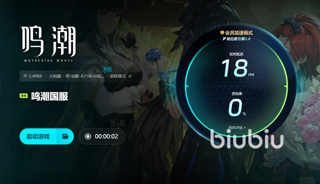 总之,无论鸣潮掉帧怎么解决?玩鸣潮都需要达到游戏配置要求,并优化好游戏服务器和本地网络,为游戏创造理想的运行环境,才能获得更好的体验。最后,想要提醒各位鸣潮玩家,想要获得biubiu加速效果,需要通过加速器启动这款游戏才可以的哦。