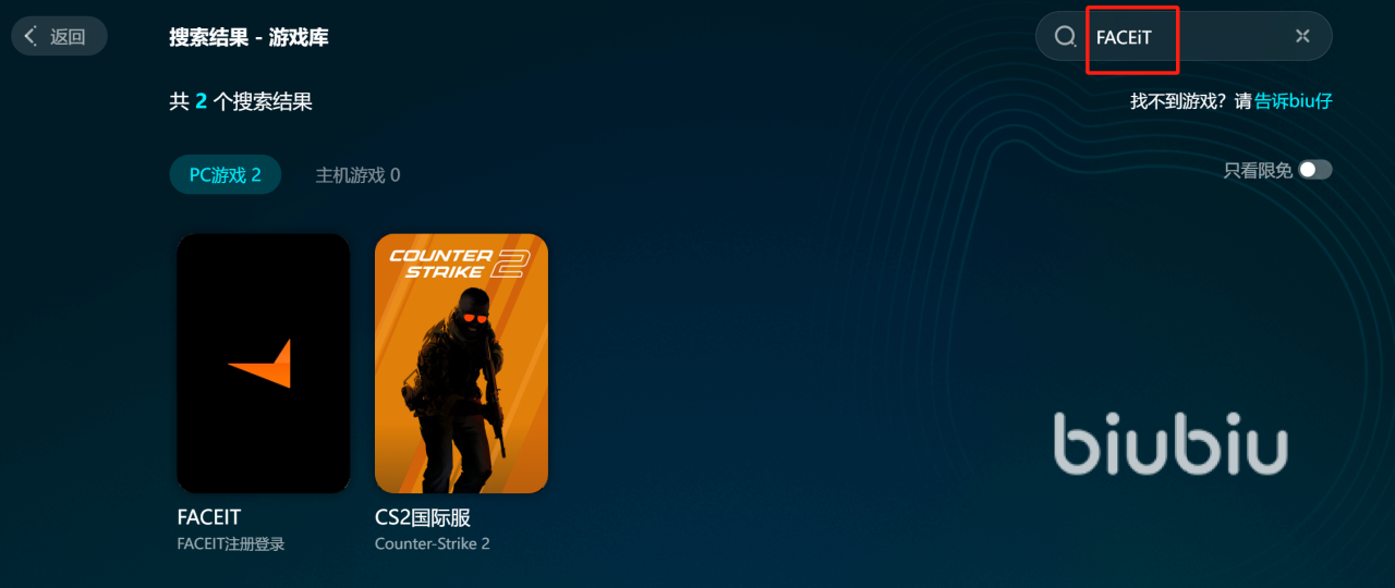 由于FACEiT是国外对战平台,国内玩家想要顺利登录并流畅游戏,面临诸多网络难题。平台玩家数量庞大,网络拥堵频繁,加之国内网络环境复杂,导致延迟高、卡顿甚至无法登录等问题屡见不鲜。这些问题严重影响游戏体验,让玩家苦不堪言。别担心,biubiu加速器来帮你!它堪称解决网络问题的神器,能为你在FACEiT平台的游戏之旅保驾护航。玩家们只需要在biubiu加速器中搜索‘FACEiT’,点击加速,即可完成对FACEiT平台的加速,然后就可以开启全球对战啦,一键加速,连新手小白都可以轻松使用。