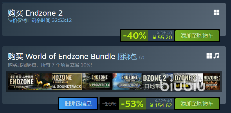 在steam平台上,末日地带2的原价为92元,目前,游戏正在享受6折优惠,折后价仅为55.2元,对于想要体验这款游戏的玩家来说,这是一个非常划算的入手时机。除了本体,更有精心搭配的游戏捆绑包同步优惠,玩家可以根据自己的需求进行合理选购,进一步节省开支。