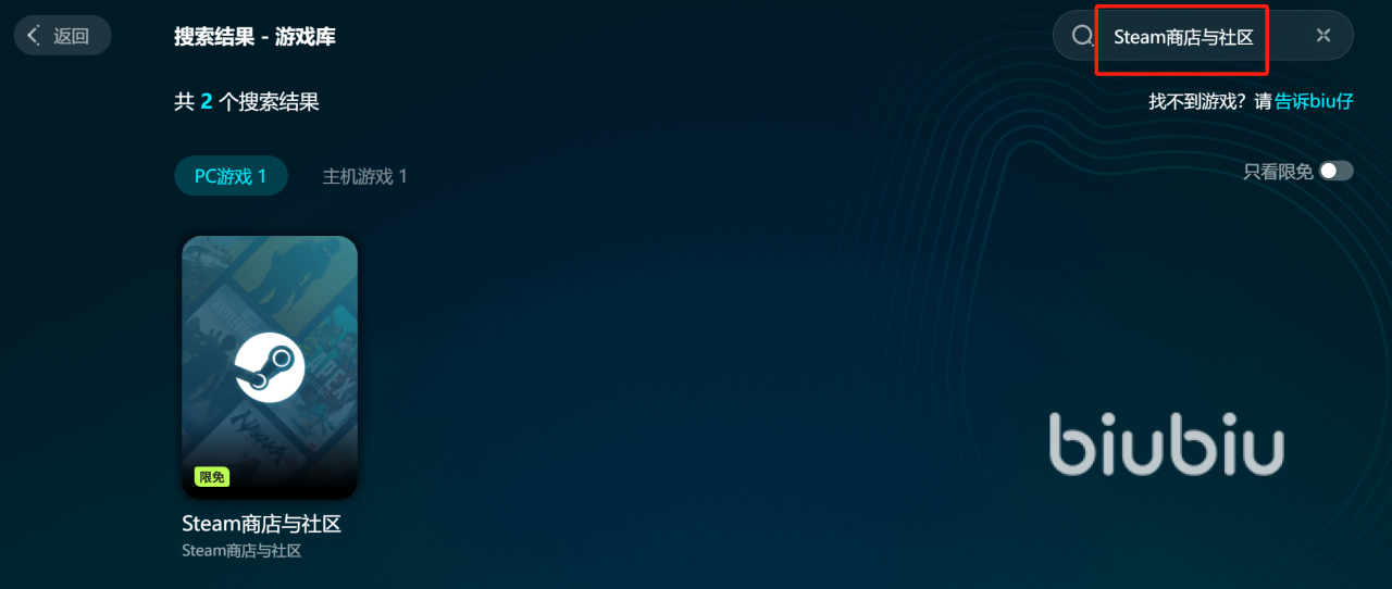 玩家们只需要在biubiu加速器上搜索“Steam商店与社区”,点击加速,就可以同步加速鬼泣4特别版的下载了。
