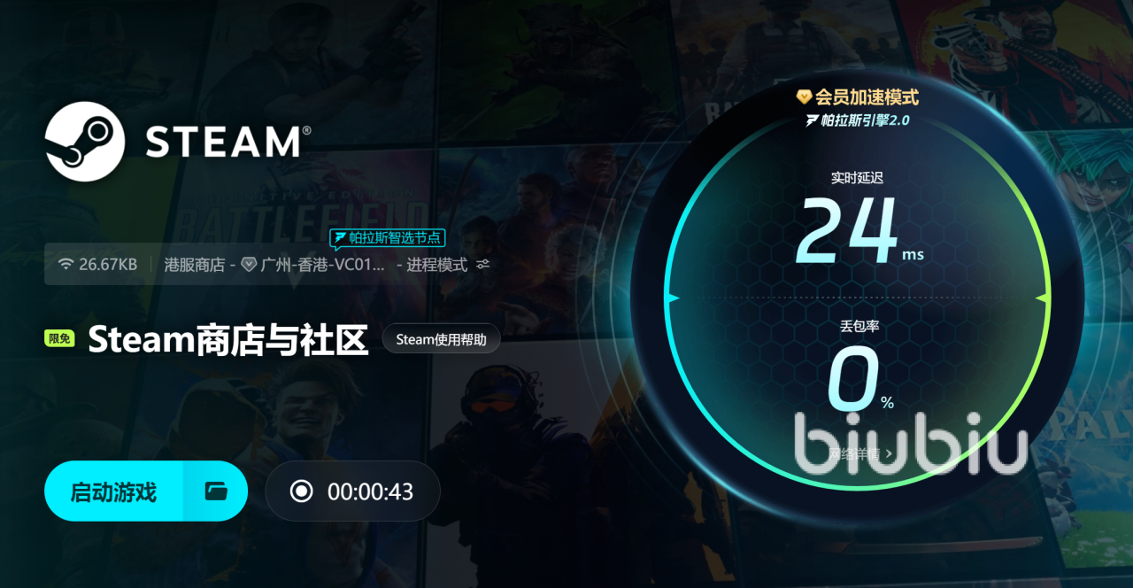 软件为新用户提供了见面礼,新用户免费加速24小时,免费体验优质的加速服务,感受游戏闪退问题得到改善的畅快感。输入兑换码【biubiu不卡顿】还能加速3天,合计96小时,玩家们也可以用这96h去体验游戏库里其他自己喜欢的游戏哦,玩家们赶紧点击上方链接下载biubiu加速器吧。