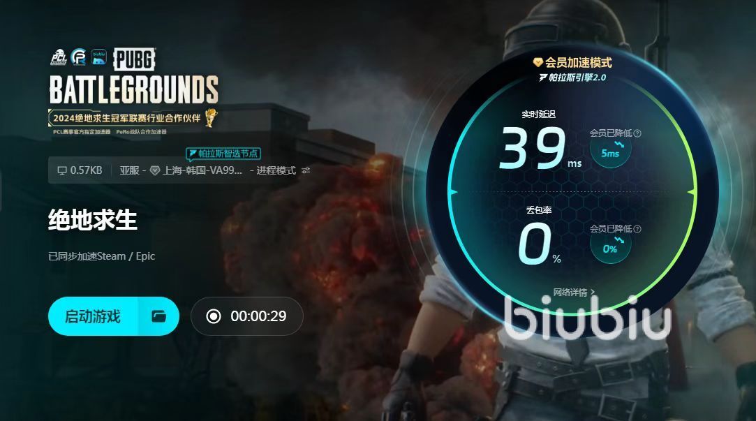 总之,绝地求生闪退处理方法十分简单。玩家安装相关的游戏工具即可。biubiu的软件福利多多,针对新游戏上线活动,还不定时推出免费加速活动。通过了解biubiu功能,玩家确认biubiu使用效果,它技术更新速度快,采用安全加密,保证网络传输效果。