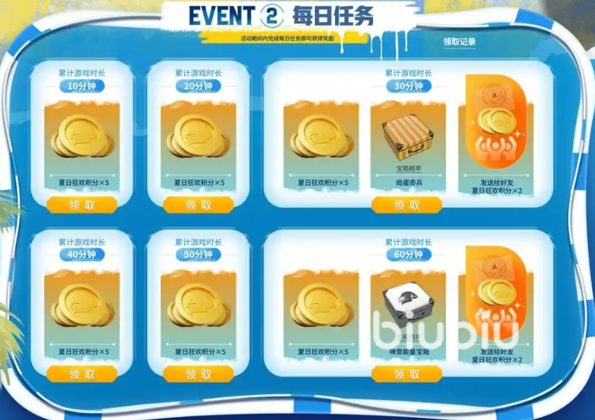 每日可向好友赠送 夏日狂欢积分×5,加速奖励兑换进度。