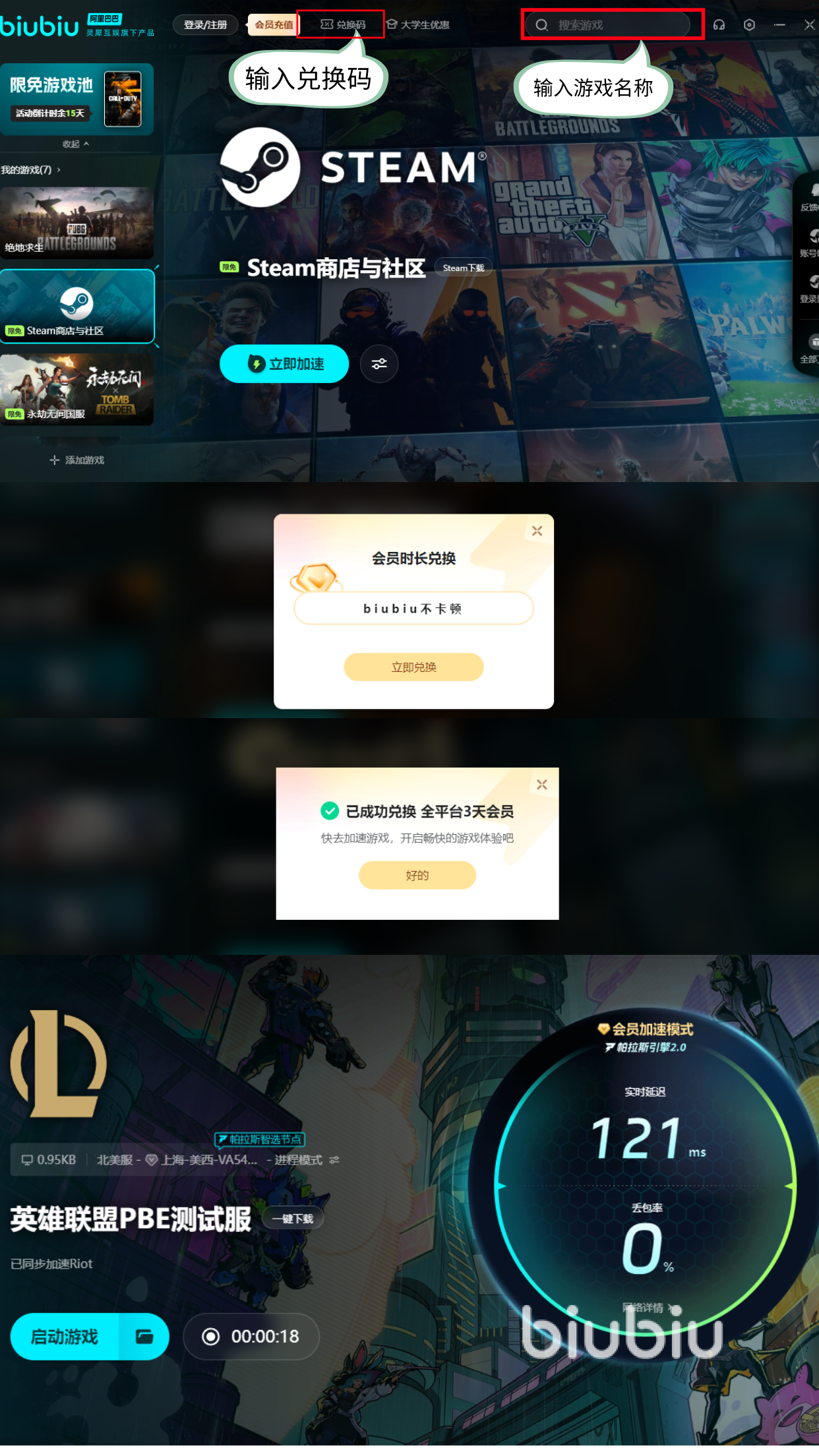 新人登录立刻就有24h免费的提速时间可以使用,任何游戏都可以进行提速,除此之外,平台考虑到了有的小伙伴注册过但是没有第一时间享受新人福利,所以额外给每个小伙伴提供了3天提速时间,用【biubiu不卡顿】即可兑换到手。