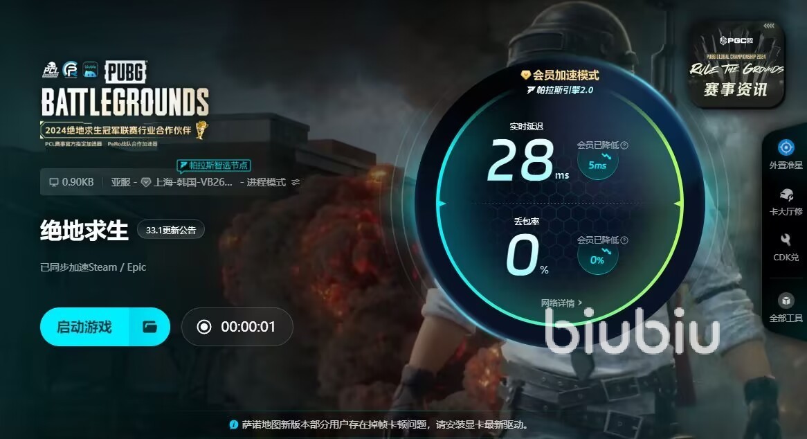 卓越的性能和丰富的用户福利而受到广泛好评,在04年的时候改加速器与绝地求生冠军联赛达成了官方合作,同时被TCL指定为比赛专用加速器。这一系列成就充分证明了其在优化网络性能方面的强大实力,足以应对顶级电竞赛事中的各种挑战,确保每位选手都能享受流畅的游戏过程。对于PUBG粉丝来说,一个稳定且快速的网络连接至关重要。激烈的交火过程中,若因网络卡顿导致操作延迟,极有可能瞬间改变战局,使原本有利的局面急转直下。所以在执行复杂的战术动作如偷袭或狙击时,任何网络波动都可能导致行动失败,给对手留下反击的机会。