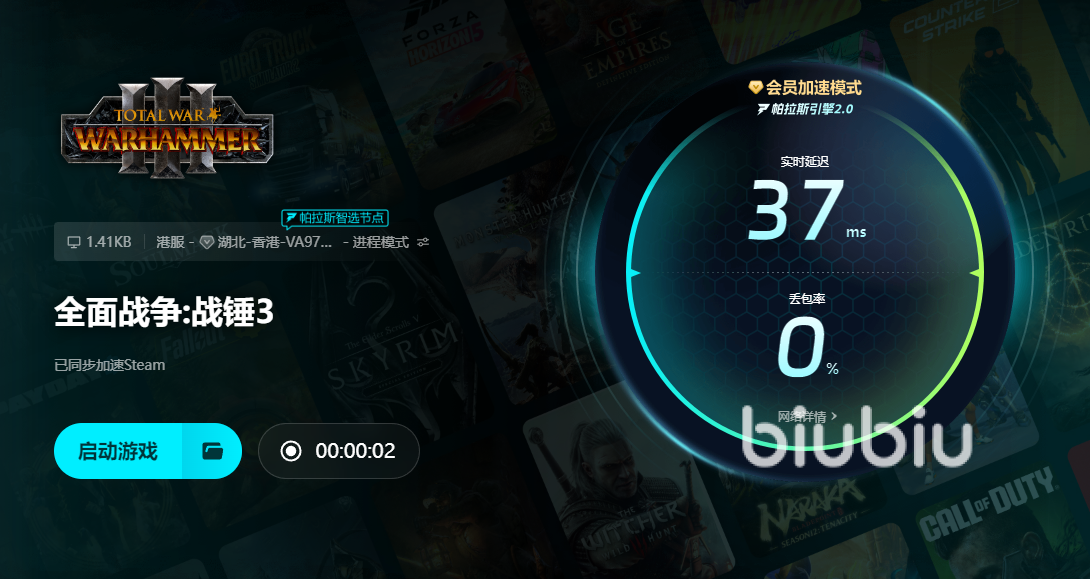 即便是在网络拥堵的高峰时段,biubiu依然能够稳定提供低延迟、低丢包的加速环境,有效降低《全面战争:战锤3》因网络不稳导致的闪退风险。使用过程十分便捷:用户只需下载安装biubiu,选择对应游戏为加速目标,点击一键加速,系统便会智能分配最优线路,无需手动配置,即使是首次使用的新手也能轻松操作。此外,biubiu还内置实时网络状态展示功能,能够清晰呈现当前的延迟数值与丢包率,帮助玩家全面掌握网络质量,提升操作信心与游戏稳定性。 值得一提的是,新用户注册可享24小时高速加速服务,输入专属兑换码【biubiu不卡顿】,还可额外获取72小时免费加速时长,零成本尝试优化效果,对频繁遇到加载闪退的玩家而言,极具吸引力。