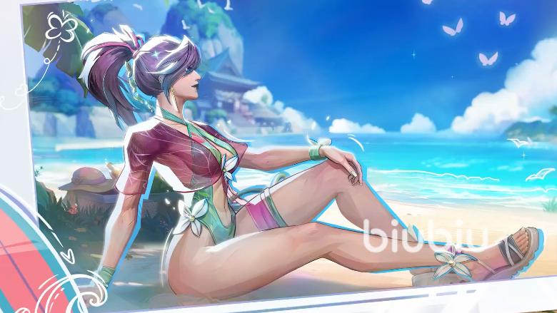 灵蝶「沧浪之翅」:连体泳衣+半透明蝶翼外套,支持“紫堇”“月见”配色,可升级终极技能特效。
